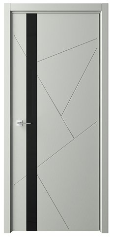 Дверь Геометрия-6 ширина 80 см Серый Эмаль Стекло черное с замком кромка В цвет полотна в Новокузнецке